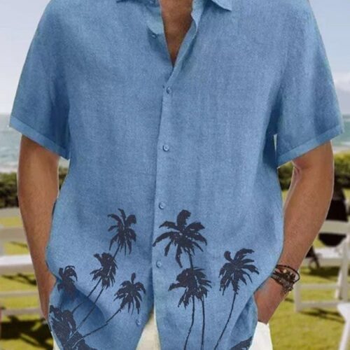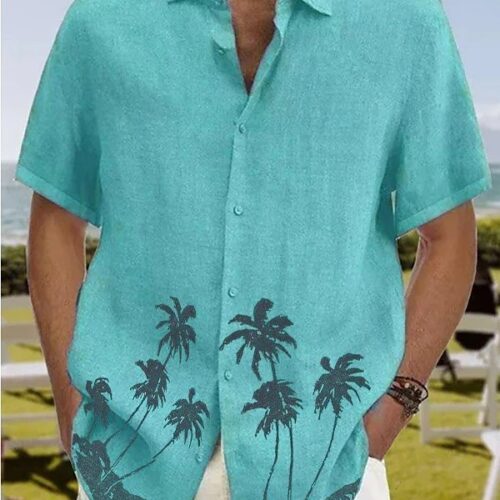 Beach Shirt style is redefined in this tropical-inspired piece. Designed as an essential Short Sleeve Shirt, it embodies the latest Summer Fashion Trend with its relaxed silhouette and iconic Palm Tree Printed Top graphic. The high-quality Linen Texture Tee fabric provides exceptional breathability and comfort for hot coastal days. Whether you are lounging poolside or exploring a seaside town, this all-match top ensures a sharp, vacation-ready look. Durable, lightweight, and effortlessly stylish for any summer adventure.