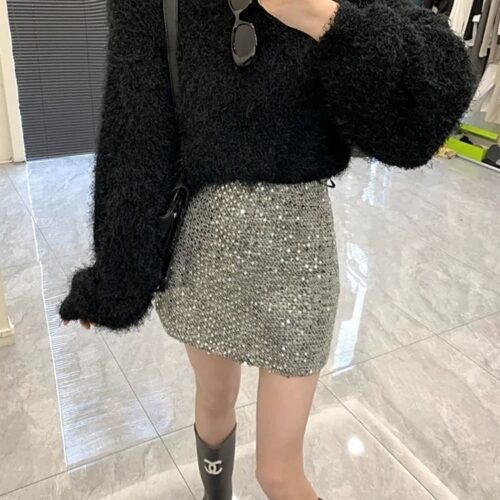 Beaded Mini Skirt elegance is personified in this stunning, high-waisted piece designed to add a touch of sparkle to your wardrobe. This tweed a-line skirt features a rich, woven texture interwoven with delicate beads that capture and reflect the light beautifully. Crafted as a high waisted sparkly skirt, it cinches the waist to create a polished and sophisticated silhouette perfect for any event. This elegant grey party skirt transitions seamlessly from office chic to evening glamour when paired with a simple cardigan or blouse. Make a statement with this embellished short skirt, the ultimate blend of classic style and modern brilliance.