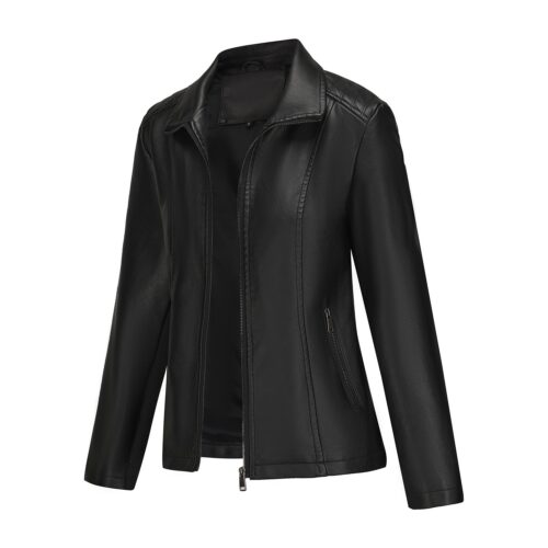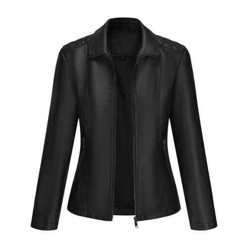 Black Faux Leather Jacket: Elevate your daily rotation with this sophisticated slim-fit jacket, expertly crafted to balance edgy style with exceptional comfort. This modern piece features high-quality black faux leather with integrated knitted stitching, providing a subtle stretch that contours to your silhouette while ensuring full range of movement. Elegant quilted panels on the shoulders and a streamlined stand collar offer a refined “Quiet Luxury” aesthetic that is currently trending across major European fashion hubs. Complete with functional side zippers and a sleek front closure, this all-matching jacket is the perfect lightweight layer to pair with high-waisted denim for a polished, urban look.