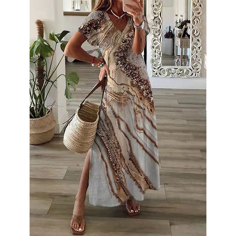 Boho Maxi Dress style meets everyday comfort in this versatile and vibrant silhouette. This v-neck printed kaftan features a stunning blue and white floral motif, offering the effortless charm of a short sleeve casual sundress. Designed as an ethnic print long gown, it includes a side-slit hem for added movement and breathability. The loose fit summer dress construction ensures a flattering drape on all body types, making it an essential piece for beach holidays or relaxed city walks. Crafted from soft, lightweight fabric, this dress keeps you cool while looking refined.