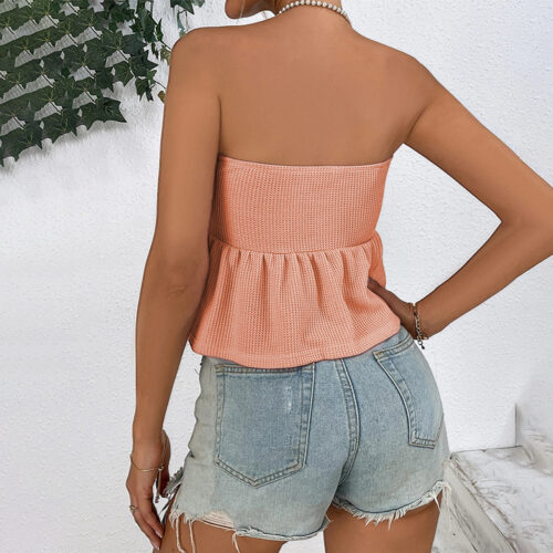 Bustier Top designs are the undisputed “must-have” for the 2026 European summer wardrobe, blending architectural structure with romantic lace-like textures. This versatile Tie-Front Peplum Top features a unique waffle-knit construction, offering the breathable comfort of a Waffle Knit Cami with the high-fashion edge of a Strapless Sweetheart Vest. Designed as a Sexy Sleeveless Corset, it includes a flattering peplum hem and adjustable waist ties that accentuate the silhouette while maintaining a relaxed, “modern urban” feel. Whether styled with high-waisted wide-leg trousers for a “Library Chic” aesthetic or paired with mini cycling shorts for a sporty city look, its soft-textured fabric and bold silhouette make it a standout piece in any contemporary collection.