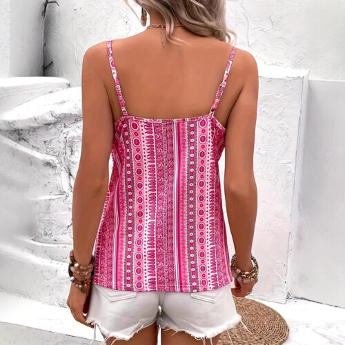 Camisole dressing reaches a new level of sophistication in 2026 with this heritage-inspired piece. This striking Italian Chain Print Top features a bold, monochromatic motif that captures the “Retro-Maximalist” energy currently trending in Milan and Paris. Designed as a Sexy V-Neck Camisole, it includes a center-knot detail to create a cinched, flattering silhouette, while the Knotted Spaghetti Cami straps offer a delicate, adjustable fit. Whether styled as an Ethnic Style Summer Vest over wide-leg trousers or tucked into a sleek midi skirt, this piece serves as the ultimate versatile staple for the modern European wardrobe.