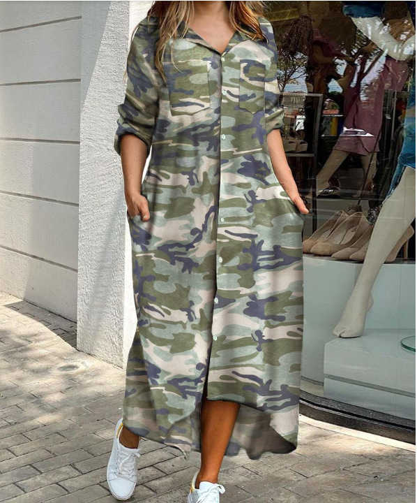 Product Content Camo Shirt Dress style is redefined in this bold, oversized silhouette featuring a vibrant yellow and khaki palette. This oversized high low maxi offers a dramatic hemline that adds movement to your streetwear look, while the unique sequin pocket shirt dress details provide a touch of unexpected glamour. Designed as a statement yellow camouflage gown, it features a functional button down long skirt dress construction that can be styled open or closed. Crafted from breathable fabric, this piece balances utilitarian edge with feminine flair for a truly standout seasonal ensemble.