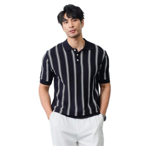 casual men shirts redefined for the modern wardrobe. This premium Knitted Shirt offers a sophisticated Short-sleeve silhouette, elevated by a high-quality vertical Lapel Stripe Top design. Crafted with a soft, breathable knit, this Versatile Casual staple provides a structured look that transitions perfectly from the office to weekend social events. The timeless vertical stripe pattern ensures an all-match appeal, combining classic preppy style with contemporary comfort.