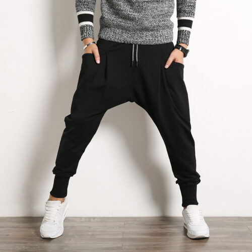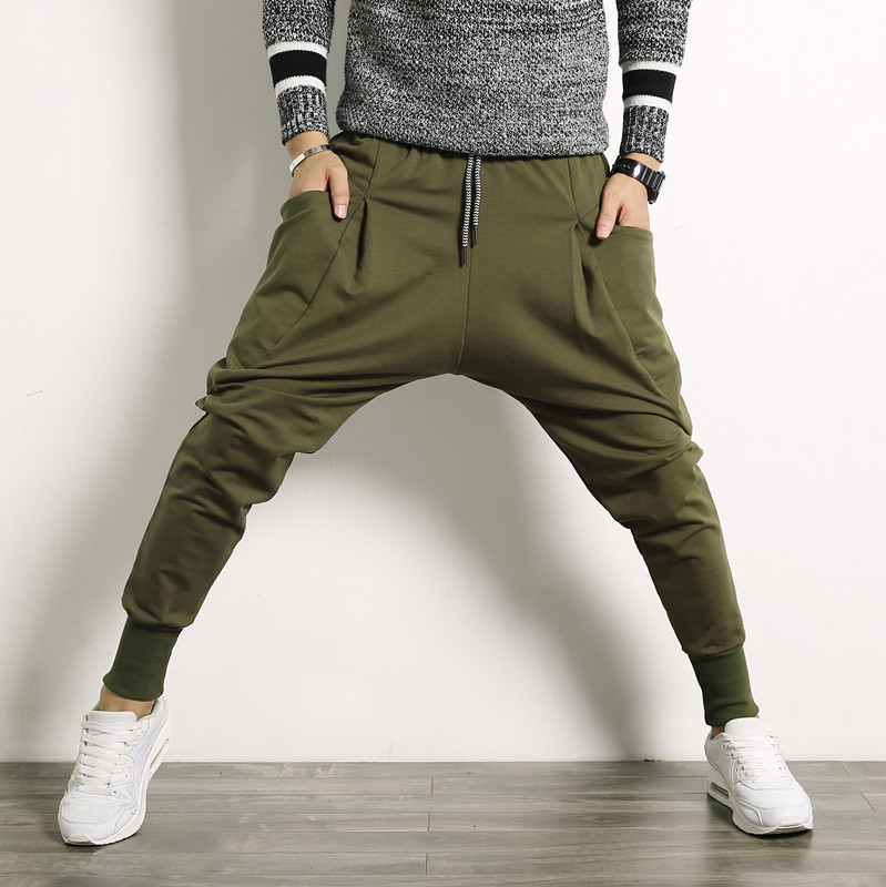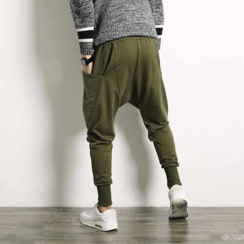 Casual Trousers Mens Harem — redefine everyday comfort with these bold casual trousers mens drop crotch design. Crafted in rich army green fabric with a relaxed drop-crotch silhouette, these casual trousers mens army green style feature an elasticated drawstring waist and deep side slash pockets. The tapered ribbed cuffed ankles of these casual trousers mens hip hop inspired bottoms create a sharp modern finish. These casual trousers mens plus size Japanese streetwear pants suit every body perfectly.