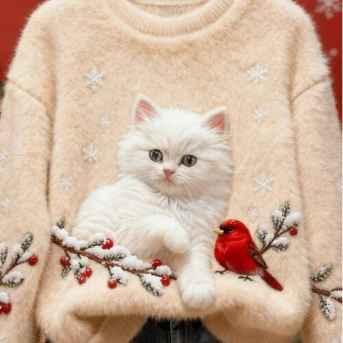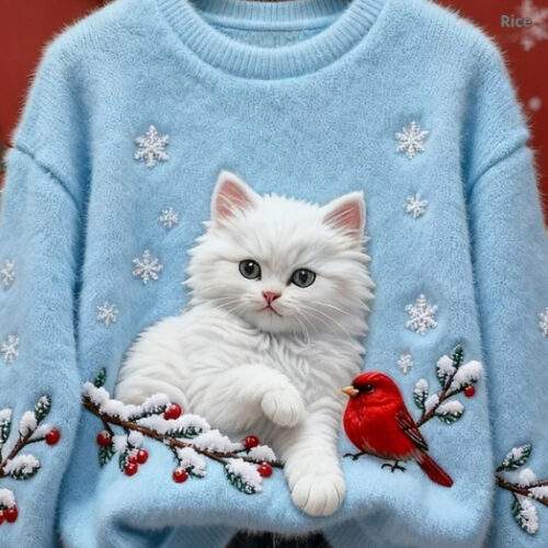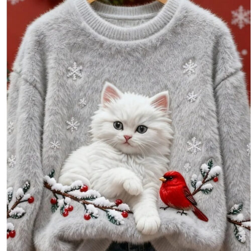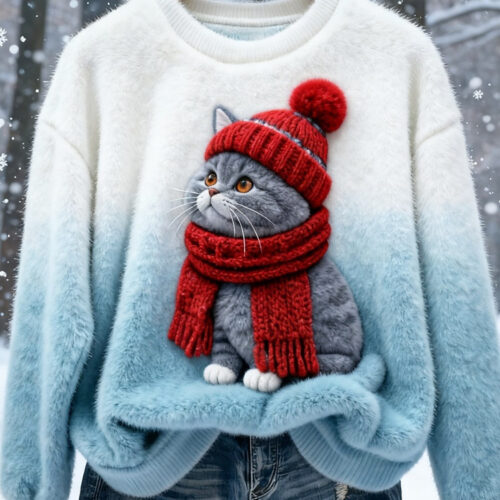 cat sweater styles are being reimagined for 2026 with ultra-soft textures and high-definition designs that appeal to pet lovers across Europe. This stunning 3D Printed Holiday Pullover features a lifelike sleeping kitten on a candy cane, creating a heartwarming visual statement for the winter months. Crafted as a Flannel Fleece Xmas Jumper, it provides a plush, insulating layer that is ideal for cold-weather layering.