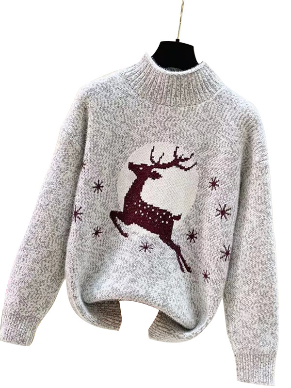 Christmas Jumper Womens fashion for 2026 reaches a new peak of elegance with this sophisticated Reindeer Christmas Sweater. Featuring a refined Mock Neck Jacquard Top construction, this piece blends traditional holiday motifs with a modern, tailored silhouette. As a premier choice for Womens Holiday Knitwear, the high-quality jacquard weave provides both warmth and a luxurious feel during the cold European winters. Whether worn for a casual gift exchange or a formal gathering, this Festive Reindeer Pullover ensures you stay stylish and cozy throughout the season.