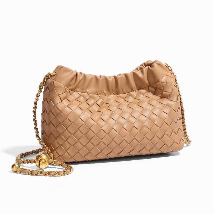 Cloud Woven Handbag Gold Beads is the 2026 essential for the modern romantic. This woven chain crossbody bag features an intricate texture accented by a designer gold chain pouch aesthetic that transitions seamlessly from day to night. Crafted as a luxury woven shoulder bag, its soft, voluminous silhouette offers a fashionable cloud shaped satchel look currently dominating Paris and Milan runways. Complete with a versatile strap, it provides an effortless blend of artisanal craftsmanship and high-fashion utility. Free Shipping.