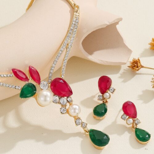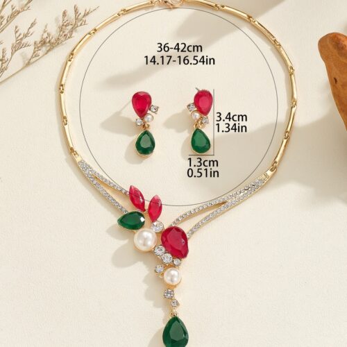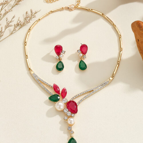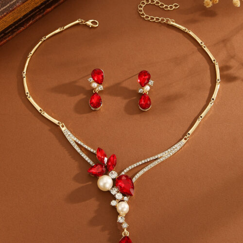 Product information: Color: color, red Material: Alloy Popular elements: Pearl Style: Personality Set combination: earrings necklace