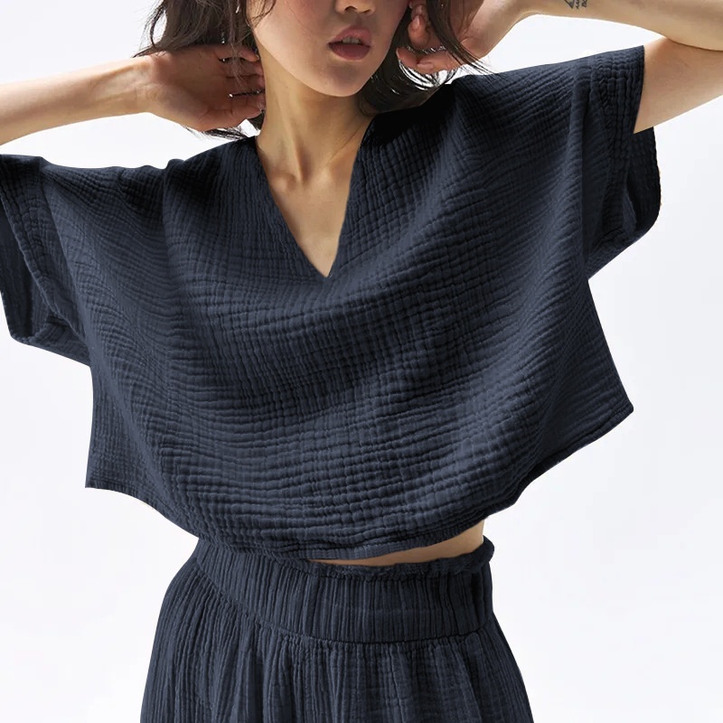 Cotton Gauze Top collections are the ultimate “hero piece” for the 2026 European season, blending effortless elegance with a tactile, artisanal finish. This sophisticated Women’s Muslin Shirt features a premium double-layered weave, offering the polished silhouette of an Organic Cotton Blouse with the lightweight, “cloud-like” comfort of a true Short Sleeve Casual Top. Designed to be the definitive Breathable Summer Top, it keeps you cool during city commutes while providing the structural integrity needed for a refined look. Whether paired with raw denim for a Parisian weekend or styled with tailored linen for a London office, its naturally crinkled texture and intentional cut ensure you master the season’s most celebrated “texture-led minimalism” trend.