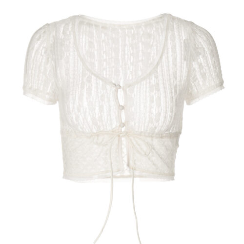 Crop Top Women collections are the ultimate “hero piece” for the 2026 European season, blending effortless “Romantic Renaissance” elegance with high-fashion tactile intrigue. This sophisticated Sheer Lace-Up Cardigan features a premium, lightweight knit that delivers the delicate visual interest of a Lace Tie-Up Mesh Top while maintaining a refined, “Library Chic” silhouette. Designed as a Slim-Fit Lace Cardigan, it functions as a versatile “desk-to-dinner” staple that elevates high-waisted denim or tailored blazers with a touch of “modern sculptural” edge. Whether styled as a Sheer Mesh Crop Top for a Parisian weekend or worn as a layered base for a London office ensemble, its intricate lace texture and intentional fit ensure you master the season’s most celebrated “draping and movement” trend.