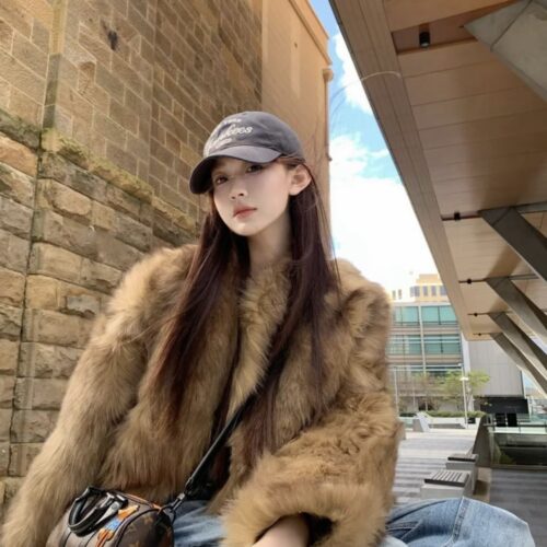 Cropped Faux Fur Jacket: Achieve a bold, high-fashion look with this American-style cropped eco-friendly fur top in a rich, warm tan. This statement piece features a voluminous, fluffy texture designed to mimic the depth of natural fur while remaining entirely ethical. Its structured, boxy silhouette and oversized sleeves embody the popular “Mob Wife” aesthetic trending across Europe this season. Crafted from premium, ultra-soft plush fibers, this jacket offers incredible warmth and a soft-to-the-touch feel, making it the perfect versatile layer to pair with baggy denim or a sleek mini skirt for a street-shot ready ensemble.