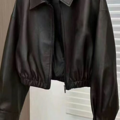 Cropped Leather Jacket: Achieve an effortlessly modern silhouette with this premium black leather jacket, expertly designed with a clean, minimalist aesthetic. This Cropped Leather Jacket features soft, high-quality faux leather with a subtle matte finish, perfect for the “Quiet Luxury” look trending across major European fashion hubs. The design is elevated by a unique square-neck collar and a structured full-length front zipper, while the elasticized waist creates a flattering, boxy bomber effect. Ideal for spring and autumn layering, its lightweight and versatile design pairs perfectly with high-waisted trousers or silk midi skirts for a polished 2026 street-style look.