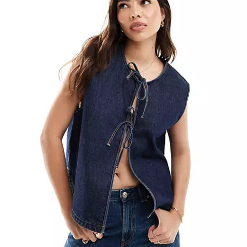 Denim Waistcoat Women collections are the essential “statement layer” for the 2026 European spring. This striking Tie-Front Denim Vest features an adjustable rope closure, offering the breathable comfort of a Sleeveless Denim Crop Top with the structured edge of a Denim Fashion Gilet. Designed as a Retro Y2K Denim Vest, it provides a unique “cool-girl” vibe that works perfectly over summer dresses or paired with wide-leg jeans for a full denim-on-denim look. Whether you’re heading to a city festival or a casual dinner, its lightweight cotton-blend fabric and feminine tie details make it a versatile hero piece in any contemporary capsule wardrobe.