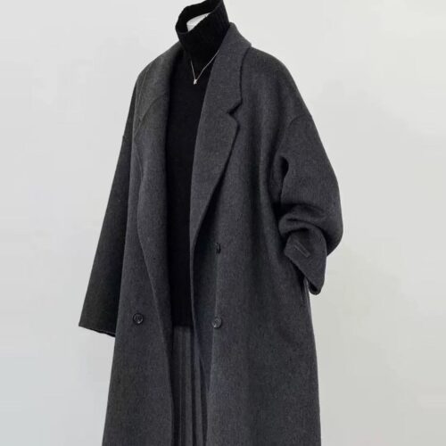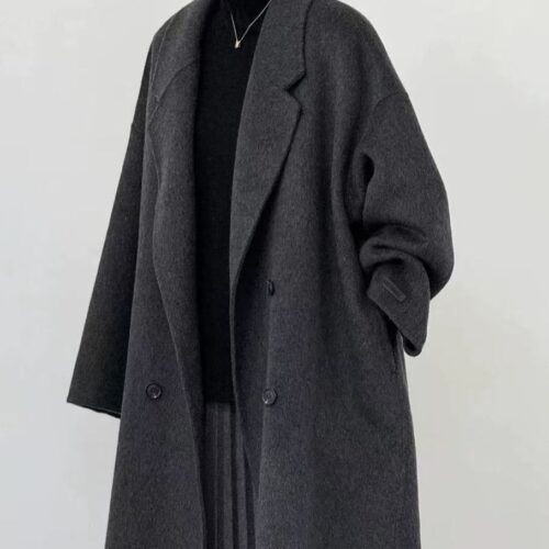 Double Faced Wool Coat: Discover the epitome of refined European style with this premium longline cashmere-blend overcoat. Featuring a sophisticated double-faced wool construction, this piece offers exceptional warmth without the bulk, creating a sleek and effortless silhouette. The classic double-breasted front is accented with understated buttons and a sharp notched lapel, embodying the “Quiet Luxury” aesthetic. Perfectly cut to a mid-length finish, this elegant white coat is a timeless investment piece for the modern woman’s winter wardrobe.