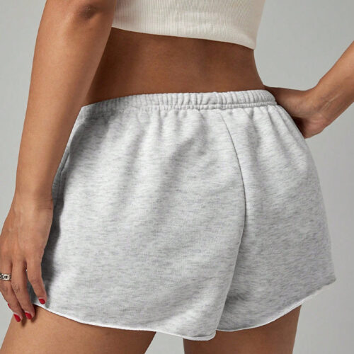 Drawstring Shorts are the perfect blend of style and ease, featuring a flexible waist tie that allows for a custom, secure fit throughout the day. These elastic waist lounge shorts offer a relaxed, breezy silhouette that is ideal for staying comfortable while at home or out on casual errands. Designed as grey jersey casual shorts, they are made from a breathable, skin-friendly material that feels incredibly soft to the touch. These high rise raw hem shorts feature a contemporary unfinished edge, functioning as soft cotton summer trousers that pair effortlessly with your favorite athletic tops or cropped sweaters.