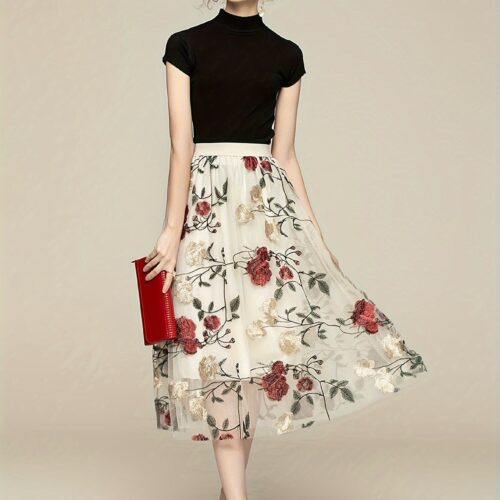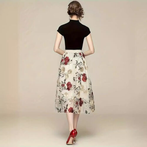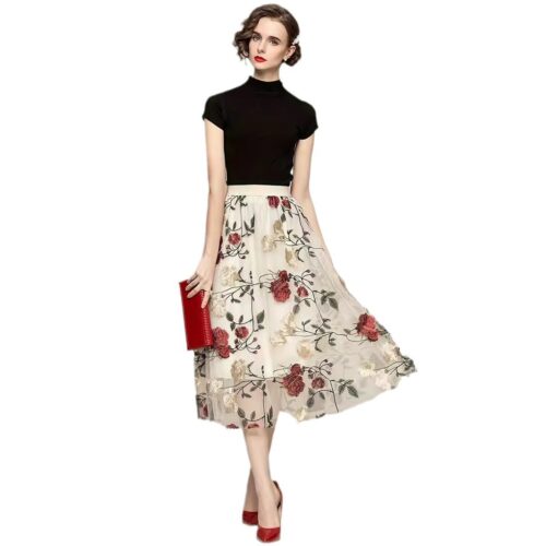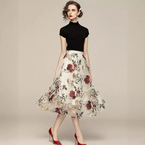 Embroidered Skirt elegance is redefined with this breathtaking piece featuring intricate peony needlework. This floral midi skirt is designed with a lightweight mesh overlay that creates a dreamlike, romantic aesthetic for any formal occasion. The classic tulle a-line skirt silhouette offers a flattering flare that provides both volume and movement. Designed as a high waisted party skirt, it cinches the waist perfectly to create a sophisticated and polished profile. Whether attending a wedding or a garden gala, this vintage peony skirt brings a touch of timeless charm and artisan detail to your modern ensemble.
