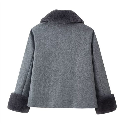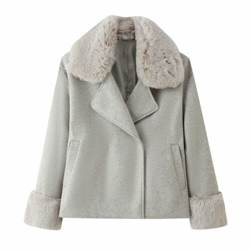 Elevate your winter wardrobe with this sophisticated Faux Fur Collar Coat. Crafted from a premium wool blend, this short-length jacket features an oversized, plush faux fur collar and matching cuffs that exude European elegance. The clean, structured silhouette is complemented by hidden fastenings and deep side pockets, making it an ideal choice for both professional settings and evening events. Available in versatile grey tones, this piece provides exceptional warmth without sacrificing style.