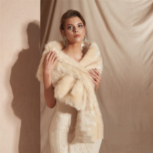 Faux Fur Wrap is the definitive 2026 accessory for the elegant woman, offering a masterclass in “Opulence Couture” and high-performance warmth. This Luxury Ivory Fur Stole is meticulously crafted with high-density, integrated fibers to provide a plush, “swaddle-like” feel that transitions effortlessly from formal winter galas to intimate evening events. Designed as a Winter Wedding Fur Shawl, it features a specialized tonal weave that mimics the multi-dimensional depth of real fox fur while remaining entirely cruelty-free. This Vintage Inspired Bridal Shrug utilizes a structured, wrap-around silhouette to accentuate the frame, serving as a superior Ethical Faux Fox Capelet for those who value both timeless Hollywood glamour and sustainable craftsmanship. Elevate your seasonal rotation with this buttery-soft, protective essential that perfectly captures the year’s top “Mob Wife” and heritage-inspired trends.