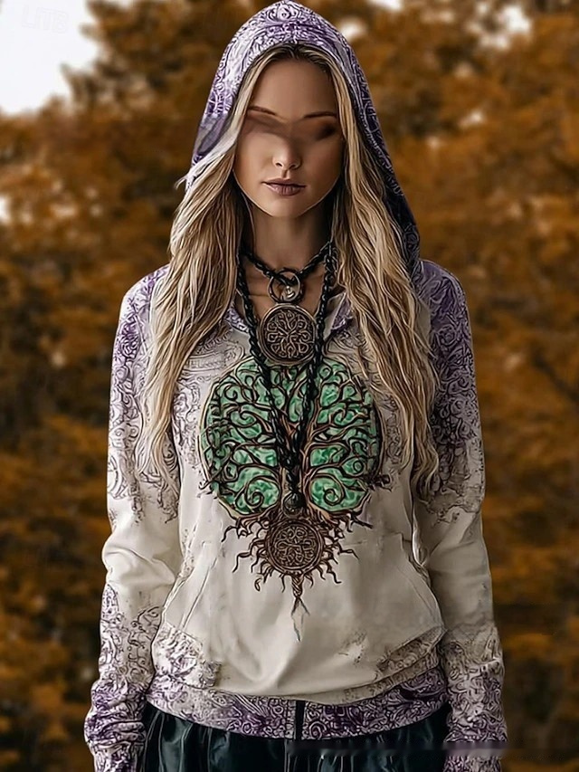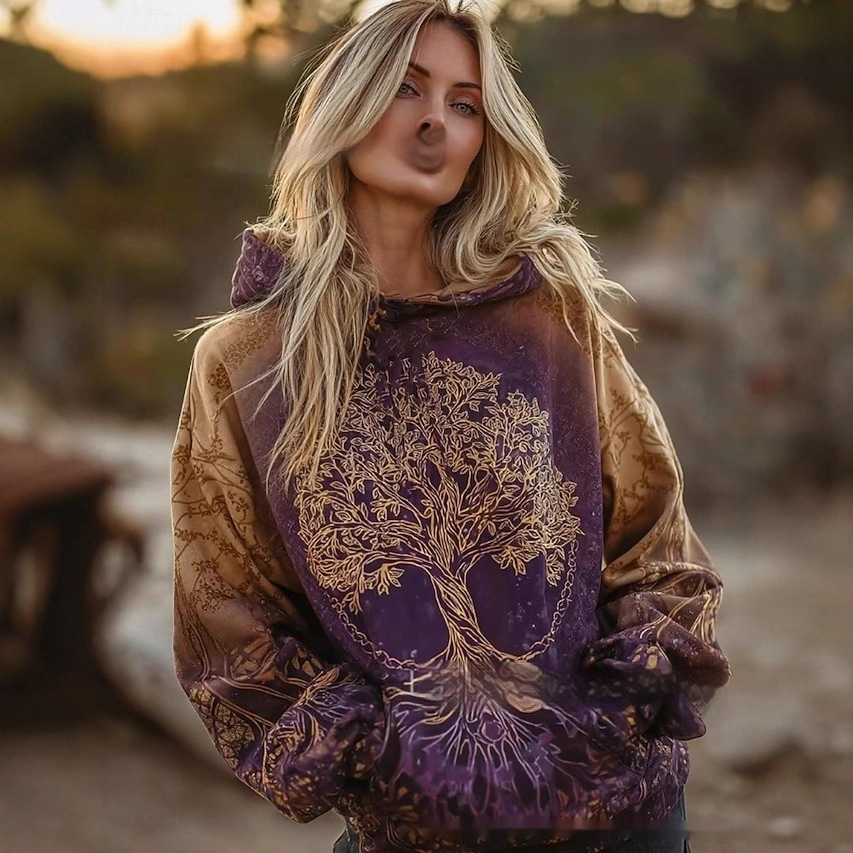 Floral Print Hoodie designs are a defining pillar of the 2026 “Romantic Nostalgia” trend, blending high-fashion craftsmanship with everyday comfort. This stunning retro floral sweatshirt features an intricate gradient art print that transitions seamlessly between rich, vintage-inspired tones. As a versatile gradient pattern pullover, it offers a unique visual depth that elevates it above standard casual wear. This vintage art drawstring hoody is crafted from a premium cotton-blend fabric, ensuring a soft hand-feel and cozy warmth during the crisp European transition seasons. Whether you are browsing an artisan market or meeting friends in the city, this boho aesthetic winter top provides a modern, oversized silhouette that pairs perfectly with high-waisted denim or flowing skirts.