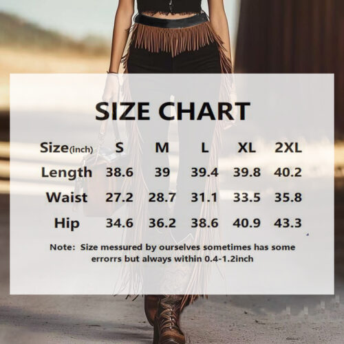 - Dynamic Fringe Accents: Â Handcrafted-looking fringe at waist and legs adds Western authenticity