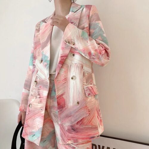 Graffiti Blazer style takes center stage with this pastel-infused masterpiece, blending contemporary street-art vibes with a sophisticated tailored silhouette. This vibrant abstract pattern suit jacket features an expressive array of brushstrokes, making it a truly one-of-a-kind addition to your wardrobe. As a premier double breasted artistic coat, it provides a structured profile that remains comfortably relaxed. This pastel multi color outerwear transitions perfectly from day to night, functioning as an oversized graphic blazer that pairs effortlessly with chic trousers or denim.