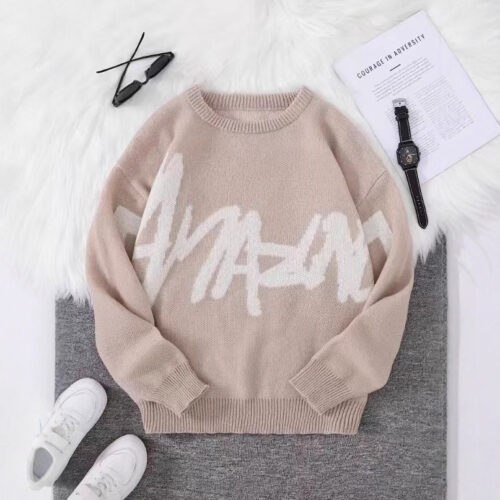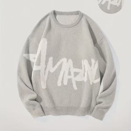 Graffiti Letter Hoodie excellence is redefined in this bold sage green design, a cornerstone for any modern urban wardrobe. This oversized knitted streetwear piece is crafted from a premium cotton-acrylic blend that provides a high-sense tactile finish and effortless drape. As a standout sage green graphic sweater, it features a vibrant “AMAZING” white script across the chest. This urban lettering pullover offers a relaxed crewneck silhouette, functioning as an elite unisex aesthetic knit jumper that transitions perfectly from city galleries to casual travel.