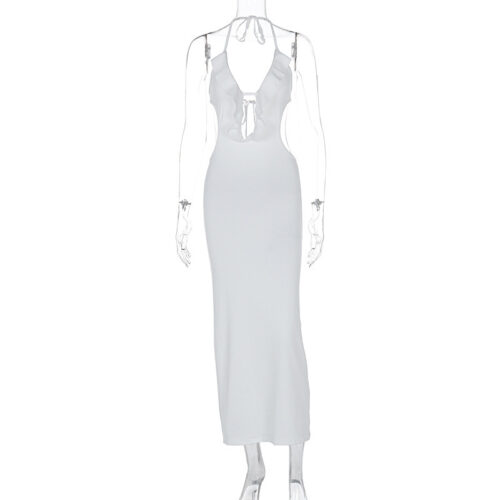 Halter Neck Dress elegance meets a daring modern edge in this stunning pink silhouette, designed to turn heads at any high-profile gathering. This sexy cut out bodycon dress features a sophisticated ruffle trim mermaid gown hem that adds a touch of romantic movement to the sleek fit. The plunging neckline and pink backless party dress design provide a bold, sculpted aesthetic, while the delicate sling v-neck evening dress straps allow for a secure and customized fit. Crafted from premium high-stretch fabric, this piece is the ultimate choice for a confident, high-glamour summer look.