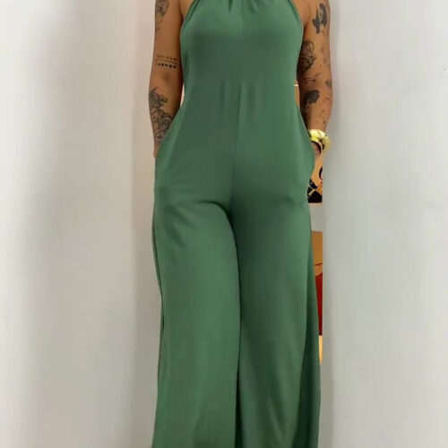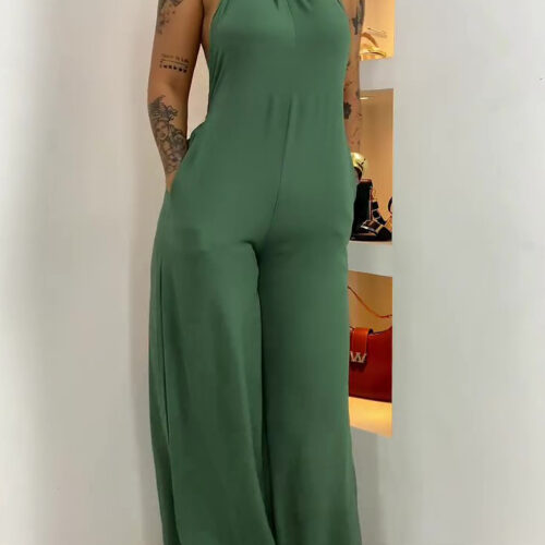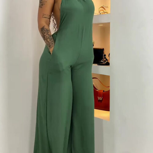 Halter Neck Jumpsuit sophistication shines in this vibrant emerald one-piece designed for ultimate summer allure. This Backless Summer Romper features a sleek neck-tie closure and a provocative open back that creates a stunning silhouette for any sun-drenched occasion. As a standout Green Wide Leg One-Piece, it offers a fluid, high-fashion drape that moves beautifully, while the Sexy Open Back Playsuit aesthetic ensures a head-turning look. Perfect as Elegant Evening Overalls, this piece blends effortless comfort with a refined, contemporary edge.