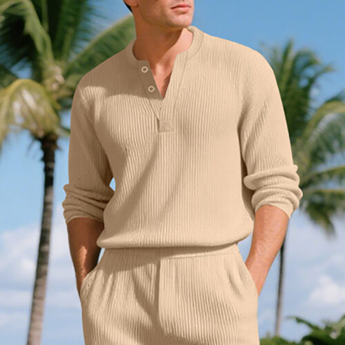 This Henley top is the definitive choice for sophisticated, everyday comfort. Unlike standard mens casual t shirts, this Ribbed Long-sleeve piece features a rich texture and a functional button placket that elevates your look. Its Relaxed-fit Casual cut ensures freedom of movement, while the breathable cotton-blend fabric makes it a perfect Base Layer Shirt for transitional weather. Whether you’re heading to a coastal retreat or a city brunch, this all-match white top provides a clean, minimalist aesthetic.