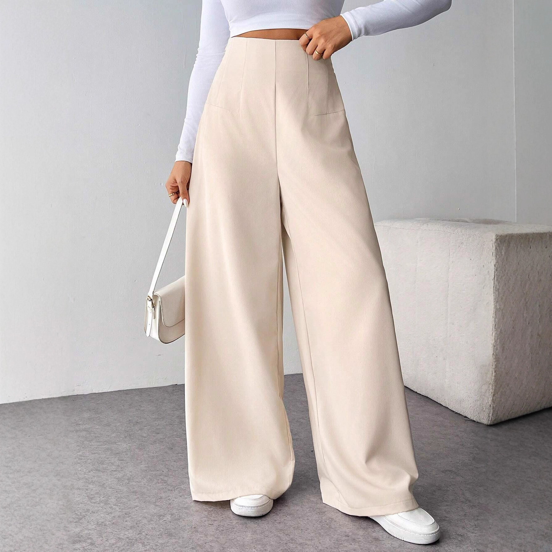 High Waisted Palazzo Pants deliver a sophisticated American-style aesthetic, blending a structured, cinched waist with a dramatic, flowing leg. These Wide Leg Suit Pants are designed to elongate your silhouette, providing a crisp and polished drape that works beautifully for any occasion. As essential Professional Work Pants Women can rely on, they offer a refined cream finish that pairs perfectly with tailored blazers or silk blouses. Whether styled as Smart Casual Office Trousers or used as Loose Fit Formal Pants for evening events, this versatile pair ensures effortless elegance and comfort.