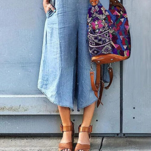 Jumpsuit Wide Leg design offers the ultimate combination of breezy comfort and high-street style, making it a versatile staple for any modern wardrobe. This denim suspender romper is meticulously crafted from a soft cotton blend, providing a lightweight and breathable feel that is perfect for layering during transitional seasons. As a sleeveless boho one-piece, it features an oversized, flowing silhouette and functional side pockets that emphasize a relaxed, artistic aesthetic.