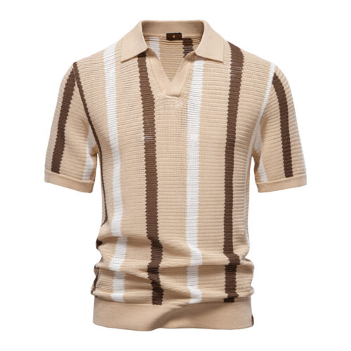 This knitted polo shirt mens essential, designed for the modern 2026 aesthetic. This premium Short-sleeved Polo features an intricate Hollow Knit Polo weave that doubles as a high-performance Breathable Polo Shirt, ensuring maximum airflow in warm weather. Combining the refined silhouette of a Men’s Sweater Polo with a unique geometric texture, this all-match top offers a sophisticated tactile experience. Perfect for upscale leisure, it pairs effortlessly with tailored trousers for a sharp, European summer look.