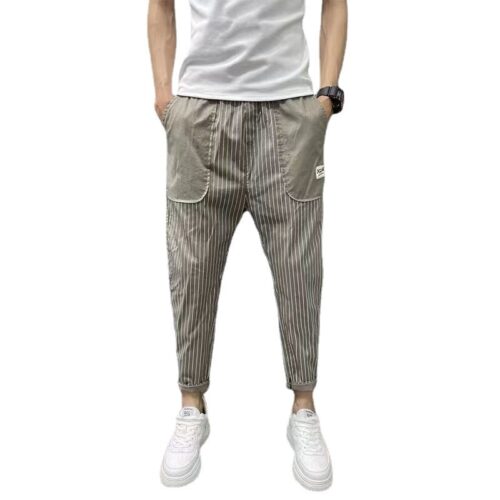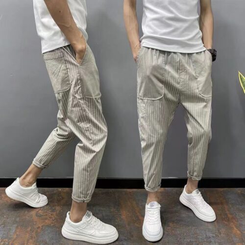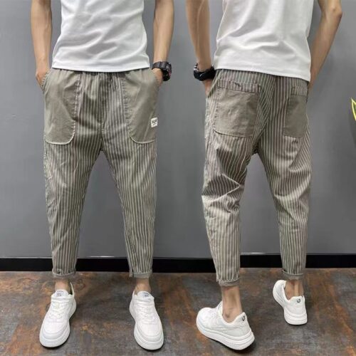 Korean style vertical striped harem pants define the urban drop crotch streetwear landscape with an elevated, fluid tailoring tapered trousers edge. Crafted from premium denim, these vertical striped denim joggers use pinstripe patterns to create a sculptural vertical line that balances oversized volume. More refined than standard men’s relaxed fit patterned jeans, the unique drop-crotch design and tapered ankle offer a polished boho look that transitions from city streets to evening events. Experience effortless elegance and movement. Buy Now.