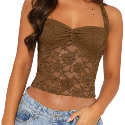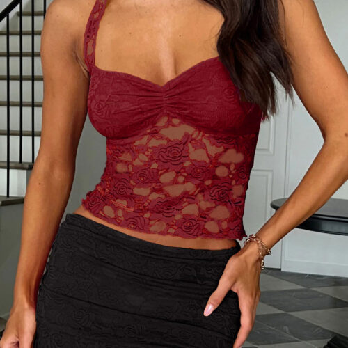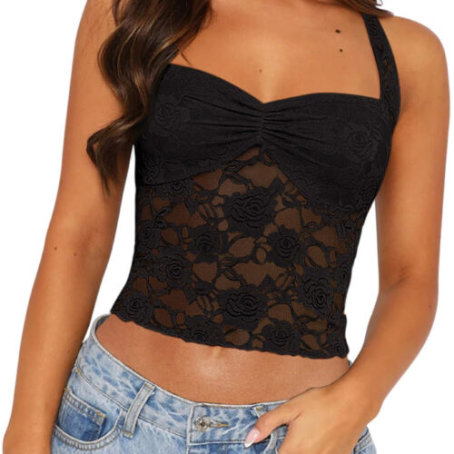 designs are the defining piece of the 2026 romantic revival trend. This delicate Floral Lace Camisole features an intricate Hollow Lace Bustier bodice that provides a structured yet soft silhouette. As a Sexy Sheer Suspender Top, it blends vintage-inspired details with a modern “underwear as outerwear” aesthetic. Whether layered for a daytime look or worn alone, this Retro Romantic Cami offers a sophisticated charm that pairs effortlessly with everything from leather jackets to satin skirts.