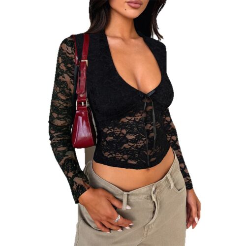 Lace Long Sleeve Top is the quintessential piece for achieving that effortless “it girl” aesthetic while embracing a touch of modern romance. This versatile garment serves as a perfect base layer or a standalone statement, blending the edgy vibes of a Sheer Mesh T-shirt with delicate, feminine textures. Designed with an intricate floral pattern, this Sexy Lace Blouse offers a sophisticated see-through effect that is both bold and elegant for evening wear. Inspired by the latest European runway trends.