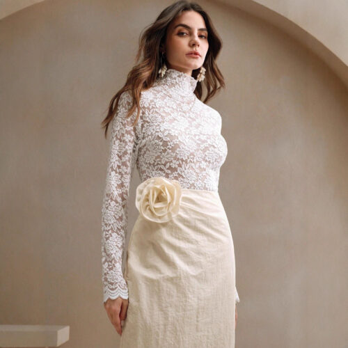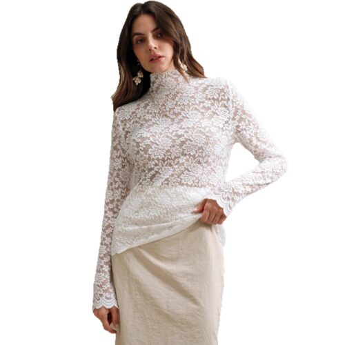 White Lace Turtleneck Top is the ultimate expression of Parisian elegance, blending a sophisticated high-neck design with artisanal craftsmanship. This French style lace blouse is designed for the modern woman who values a refined, “effortless chic” aesthetic. As a versatile lace long sleeve top, it features intricate textures that capture the timeless charm of a vintage floral lace top. Whether paired with tailored trousers or a statement skirt, this elegant sheer lace top offers a romantic yet structured look perfect for transition seasons.