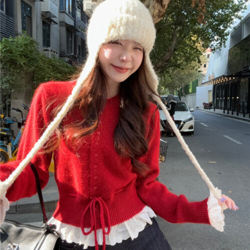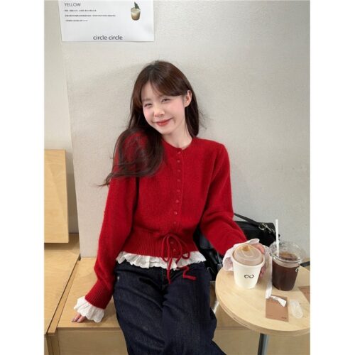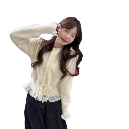 Lavender Knit Cardigan is the ultimate cozy addition to your seasonal wardrobe. This unique Defined Waist Sweater allows you to adjust the fit for a flattering silhouette, while the intricate Lace Patchwork Cardigan detailing provides a vintage-inspired charm. Perfectly capturing the Soft Girl Aesthetic Top trend, it features a delicate Ruffle Hem Knitwear finish that pairs beautifully with skirts or high-waisted trousers for a quintessential European look.