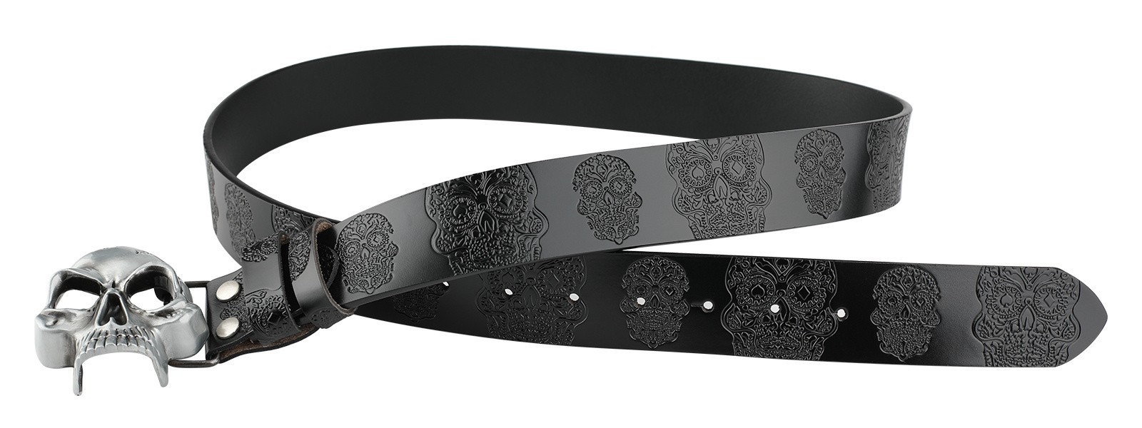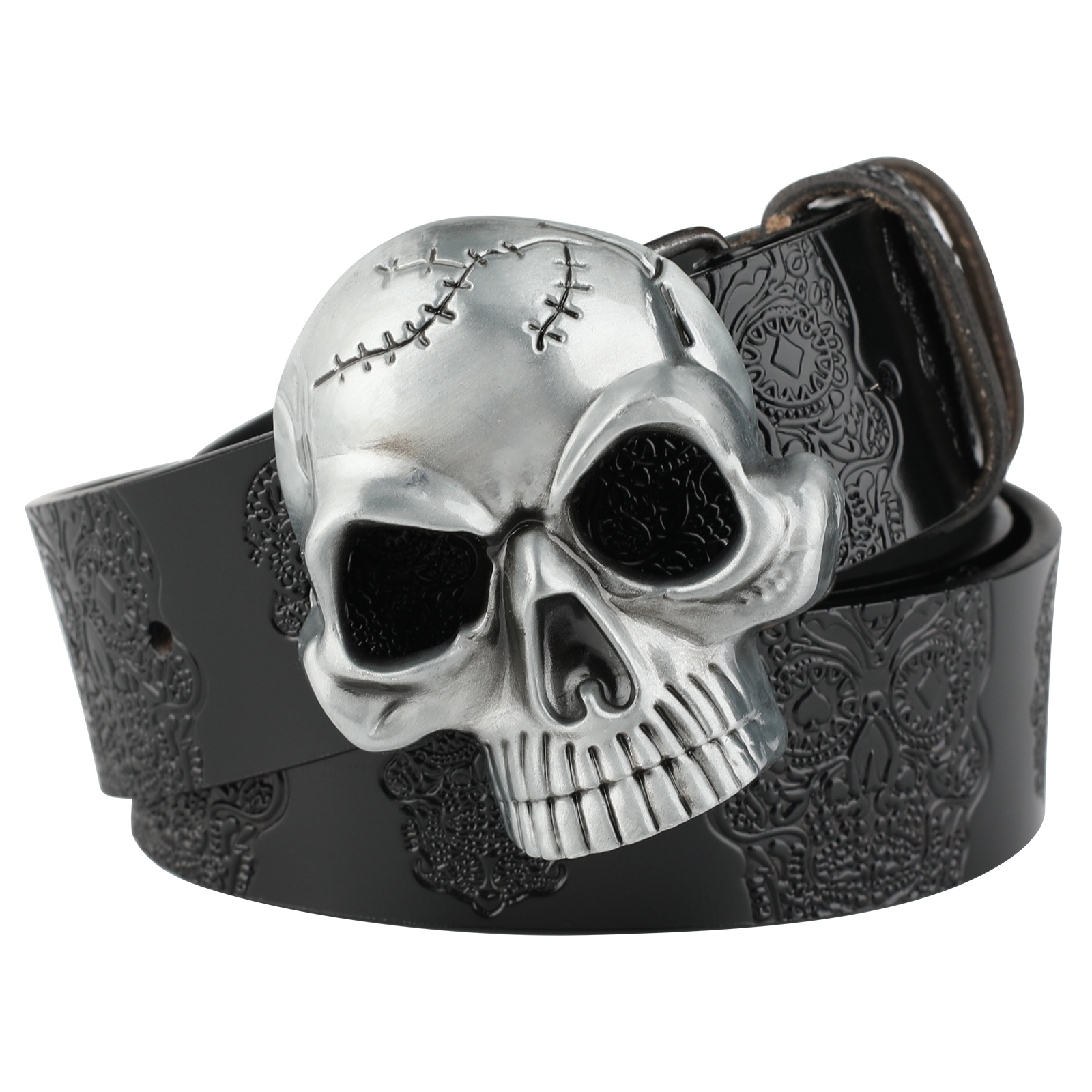 Be the first to review “Leather Belt With Embossed Ghost Head Design And Smooth Skull Buckle”