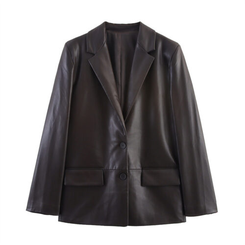 Leather Blazer stands as the definitive power piece for the modern woman’s wardrobe, blending structural precision with an effortless, straight-cut silhouette. Designed to offer a high-grade “leather effect” without the weight, this blazer features a clean-lined, single-breasted front and a tailored fit that hits at the perfect length for versatile styling. Its high-quality material provides a subtle sheen and soft-touch feel, making it an ideal choice for the European Fall/Winter transition. Whether you are layering it over a sleek dress for a professional temperament or pairing it with your favorite denim for an elevated casual look, this piece delivers a polished, sophisticated aesthetic that never goes out of style.