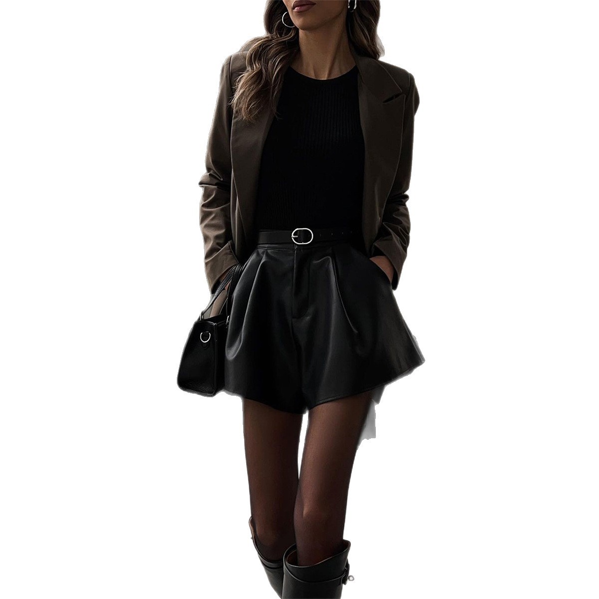 Leather Shorts are the ultimate power piece for a sophisticated yet edgy wardrobe. These premium Faux Leather Shorts offer a luxurious, high-shine finish that transitions seamlessly from office chic to evening glamour. Designed as High Waisted Leather Shorts, they feature a tailored fit that cinches the waist and flows into a comfortable, modern silhouette. The unique Wide Leg Leather Shorts cut provides a flattering, skirt-like movement that is both versatile and trendy. Elevate your look with these essential Black Leather Shorts, perfect for pairing with tights or oversized blazers.
