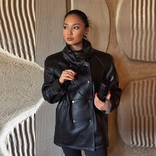 Leather Trench Coat reimagines the timeless mid-length silhouette for the sophisticated 2025 European wardrobe. This black mid-length jacket bridges the gap between traditional tailoring and modern edge, featuring a clean, straight cut and a versatile belt that cinches the waist for a flattering “power look”. Crafted from premium, soft leather with a subtle gloss finish, it reflects the year’s leading trend for “noble” materials and minimalist hardware. Whether layered over office-ready tailored trousers or paired with knee-high boots for a dramatic evening ensemble, this piece serves as an essential staple for navigating unpredictable city transitions with effortless confidence.