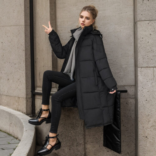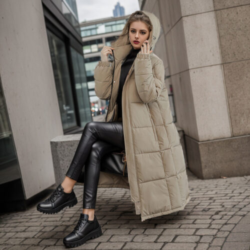 Long Puffer Coat protection defines this ultimate winter essential, meticulously crafted with an extended silhouette to keep you warm from head to toe. This thick cotton-padded jacket features high-density insulation, providing a statuesque and cozy profile even in freezing temperatures. As a premier overknee winter parka, it includes a deep, protective hood and reinforced baffles to ensure lasting comfort. This insulated hooded outerwear is designed with a sleek, minimalist exterior, making it the perfect heavyweight longline quilted coat for urban commutes and cold-weather travel.