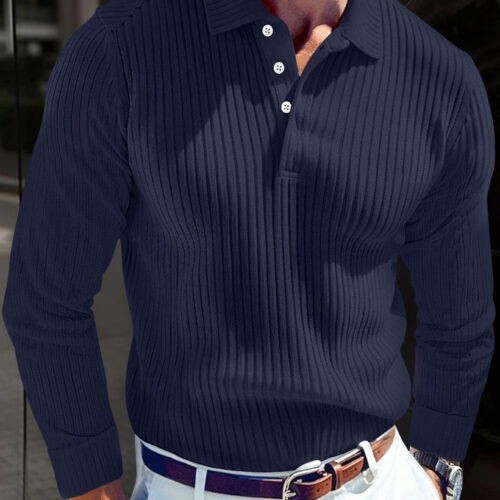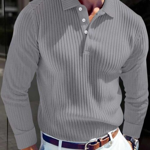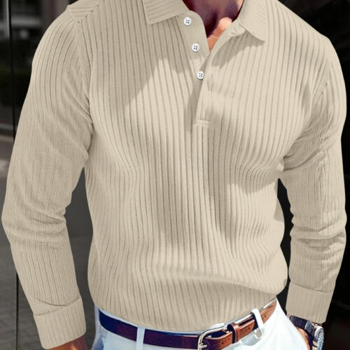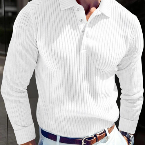 Long Sleeve Polo Shirt excellence is redefined in this sleek ribbed design, a cornerstone for the modern “quiet luxury” wardrobe. This ribbed knit polo is crafted from a high-quality, breathable fabric that provides a high-sense tactile finish and a structured, sophisticated drape. As a standout men’s slim fit top, it features a clean turn-down collar and a classic buttoned placket for a polished aesthetic. This casual buttoned shirt transitions seamlessly from office hours to evening leisure, functioning as premium textured knitwear that pairs perfectly with white chinos or tailored trousers for a crisp, effortless look.