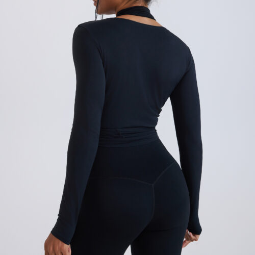 Long Sleeve Tie Front Top is a stunning blend of athletic performance and feminine silhouette, designed to be a versatile centerpiece for your modern collection. This design features a distinctive adjustable closure that creates an elegant focal point, perfect for transitioning from a morning yoga session to a chic city outing. Inspired by the grace of a Ballet Wrap Yoga Shirt, the lightweight, breathable fabric provides a second-skin feel that allows for maximum freedom of movement during studio practices. The sophisticated Cross Front Athletic Top structure offers a supportive and flattering fit, highlighting the natural waistline while ensuring you stay comfortable during high-intensity movement.