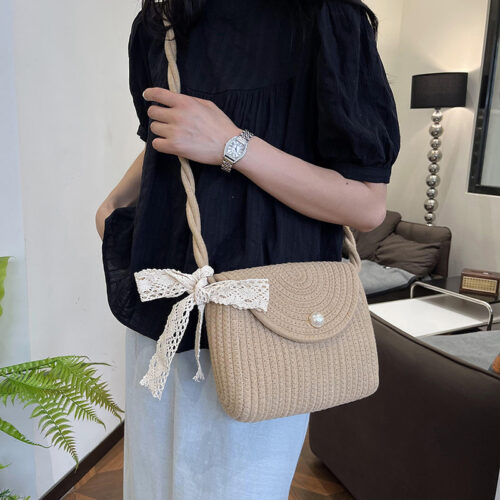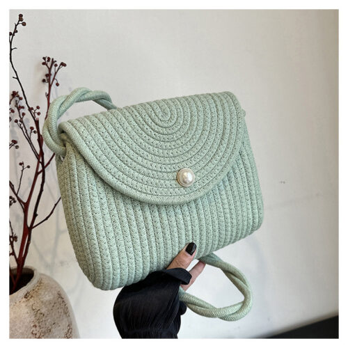 Luxury Cotton Rope Bag is the essential 2026 accessory for a soft summer aesthetic. This Handmade Woven Crossbody Bag features a unique sage green cotton rope construction and a delicate pearl button closure, capturing Europe’s “Artisanal-Luxe” trend. As a Designer Sage Green Purse, its curved silhouette and lace bow accent offer a romantic, vintage-inspired look for casual outings. The Premium Pearl Detail Handbag design includes a comfortable twisted strap for effortless all-day wear. Experience this Summer Casual Cotton Carryall, designed for those who value unique personality and tactile craftsmanship. Free shipping.