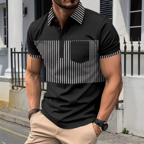 This premium Men’s Casual Polo is the ultimate bridge between athletic performance and polished elegance. Featuring a sophisticated Striped Color Matching aesthetic, this Short-sleeved Polo is enhanced by a bold Color Block Design on the shoulders. Engineered with a functional Golf Shirt Men silhouette, it offers a breathable, regular fit that remains comfortable throughout the day. The precision Stitching T-shirt details and classic collar make it an all-match staple for 2026 urban fashion.
