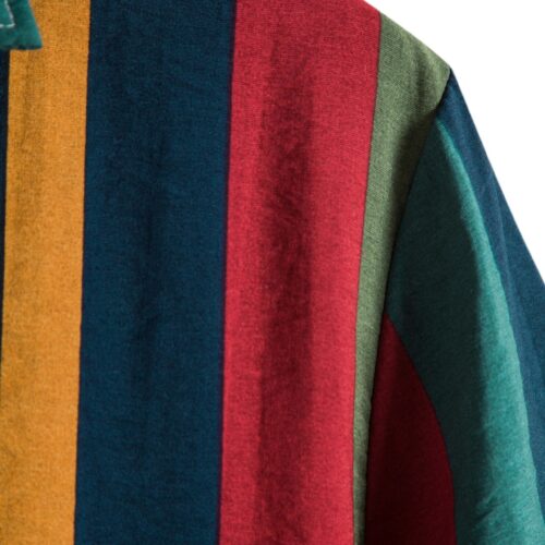 Make a bold statement with this premium Men’s Casual Shirt. Designed as a high-impact Summer Button Down, it features a striking Vertical Striped Shirt pattern in a rich, multi-color palette. This Retro Short Sleeve essential is crafted from a lightweight, breathable linen-blend fabric, ensuring maximum comfort for beachside events or urban leisure. As a standout Colorful Striped Top, its all-match aesthetic pairs effortlessly with neutral chinos or denim