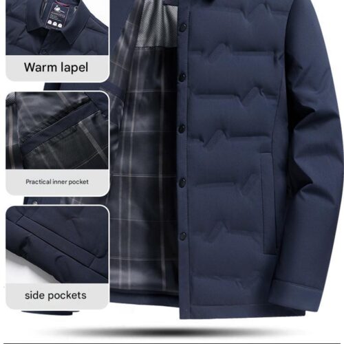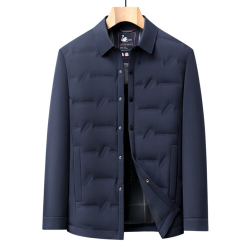 Men’s Down Jacket excellence is redefined in this sleek, button-front professional design. This lightweight winter coat features premium 90% white duck down insulation that provides a high-sense tactile finish and superior heat retention without the bulk. As a standout business casual puffer jacket, it offers a refined collared silhouette and a wind-resistant shell. This white duck down outerwear essential functions as an elite slim fit thermal parka, transitioning perfectly from office commutes to cold-weather travel with effortless sophistication.