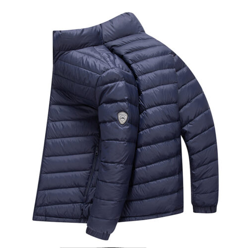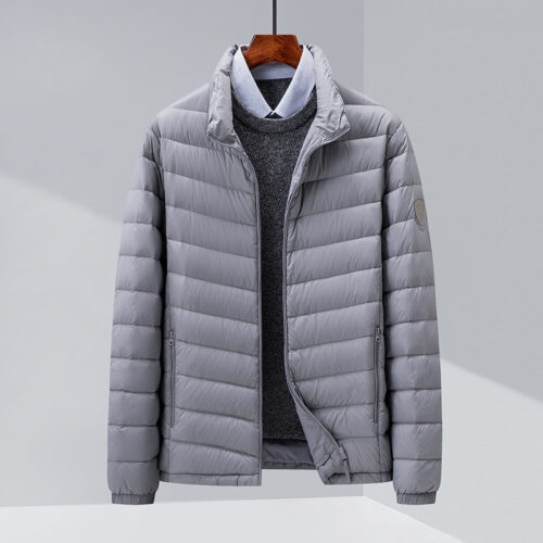 Men’s Down Jacket excellence is redefined in this sleek, horizontal-quilted design, a staple for any modern wardrobe. This lightweight padded coat utilizes premium white duck down outerwear technology to provide a high-sense tactile finish and superior warmth without the bulk. As a standout stand collar puffer jacket, it features a refined silhouette and zippered pockets for a clean, executive look. This packable slim fit parka functions as an elite thermal layer, transitioning perfectly from professional office attire to outdoor weekend travel with ease.